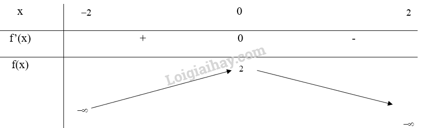 Hàm số đạt cực đại tại x = 0, \({y_{cd}} = f(0) = 2\)
