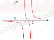 a) Đường thẳng x = 1 và x = 2 là tiệm cận đứng của đồ thị hàm số \(y = \frac{{2x – 3}}{{5{x^2} – 15x + 10}}\)