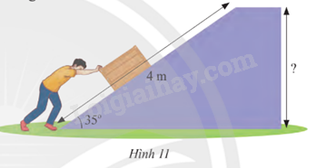 Một người đẩy một vật lên hết một con dốc nghiêng một góc 35o (Hình 11). Tính độ cao của vật so sới mặt đất biết độ dài con dốc là 4 m.