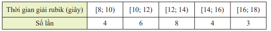 Dũng là học sinh rất giỏi chơi rubik, bạn có thể giải nhiều loại khối rubik khác nhau. Trong một lần tập luyện giải khối rubik 3×3, bạn Dũng đã tự thống kê lại thời gian giải rubik trong 25 lần giải liên tiếp ở bảng sau: