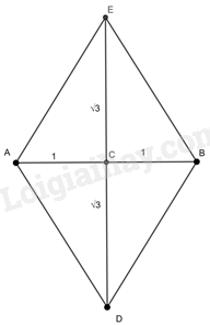 Xét hình thoi ACBE có hai đường chéo ED và đường chéo AB lần lượt là \(2\sqrt 3 \) và 2.