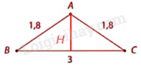 Trong Hình 4.32, mặt tiền mái nhà có chiều rộng \(BC = 3m\) và hai bên mái AB, AC cùng bằng 1,8m.