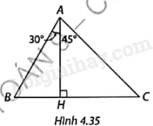 Trong Hình 4.35, tỉ số \(\frac{{BC}}{{AH}}\) bằng A. \(\frac{{\sqrt 3 }}{3} + 1\). B. \(\sqrt 3 + 1\). C. \(\frac{{\sqrt 2 }}{2} + 1\). D. \(\sqrt 2 + 1\).