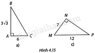 Tính số đo các góc nhọn của các tam giác vuông ở Hình 4.15. Làm tròn số đo góc đến độ.