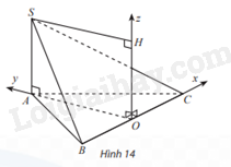 Cho hình chóp S.ABC có đáy ABC là tam giác đều cạnh bằng 2, SA vuông góc với đáy và SA bằng 1 (Hình 14). Thiết lập hệ toạ độ như hình vẽ, hãy vẽ các vectơ đơn vị trên các trục Ox, Oy, Oz và tìm toạ độ các điểm A, B, C, S.