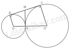 Cho đường tròn (O) và (O’) tiếp xúc ngoài với nhau tại A và cùng tiếp xúc với đường thẳng d tại B và C (khác A), trong đó \({\rm{B}} \in \left( {\rm{O}} \right)\) và \({\rm{C}} \in \left( {{\rm{O’}}} \right)\). Tiếp tuyến của (O) tại A cắt BC tại M. Chứng minh rằng: