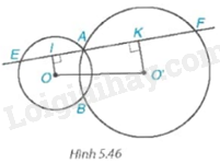 Cho hai đường tròn (O) và (O’) cắt nhau tại A và B. Một đường thẳng d đi qua A cắt (O) tại E và cắt (O’) tại F (E và F) khác A. Biết điểm A nằm trong đoạn EF. Gọi I và K lần lượt là trung điểm của AE và AF (H.5.46).