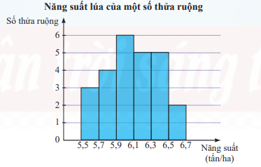 Kết quả khảo sát năng suất (đơn vị: tấn/ha) của một số thửa ruộng được minh hoạ ở biểu đồ sau.