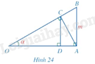 Trong Hình 24, cho \(\widehat O = \alpha ,AB = m\) và \(\widehat {OAB} = \widehat {OCA} = \widehat {ODC} = 90^\circ \).