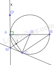 Nên \(\widehat {OAM} = \widehat {OCM}\) mà \(\widehat {OAM} = {90^o}\)(AM là tiếp tuyến tại A của (O; R))