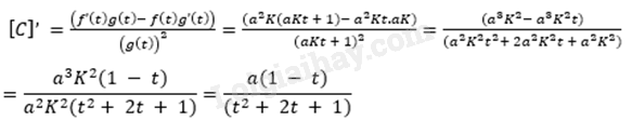Đặt \(f\left( t \right)\; = {a^2}Kt\) và \(g\left( t \right)\; = aKt + 1\). Khi đó, [C] \( = \frac{{f\left( t \right)}}{{g\left( t \right)}}.\)