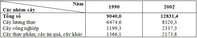 – Tổng diện tích gieo trồng các nhóm cây tăng lên khá nhanh, từ 9040,0 nghìn ha lên 12831,4 nghìn ha (tăng 1,4 lần).