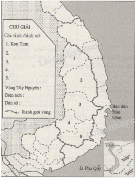b) Ghi tên các nước, các vùng tiếp giáp với vùng Tây Nguyên.
