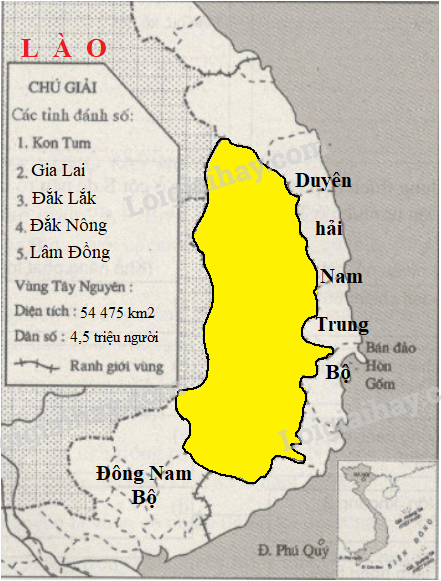 – Các vùng: phía Đông giáp Duyên hải Nam Trung Bộ và phía Tây Nam giáp Đông Nam Bộ.