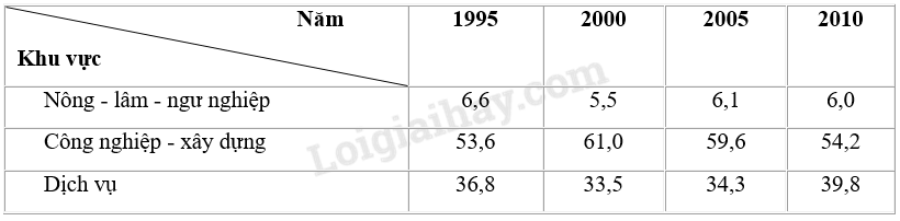 – Cơ cấu GDP của vùng trong giai đoạn 1995-2010 có sự chuyển dịch tích cực: