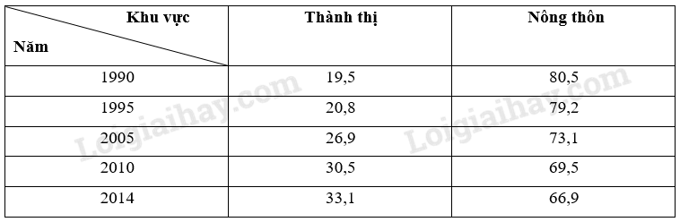 a. Nhận xét sự biến động cơ cấu dân số phân theo thành thị và nông thôn của nước ta trong thời gian trên.
