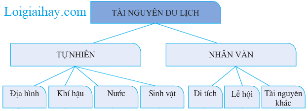 Hoàn thiện sơ đồ sau, thể hiện các loại tài nguyên du lịch ở nước ta: