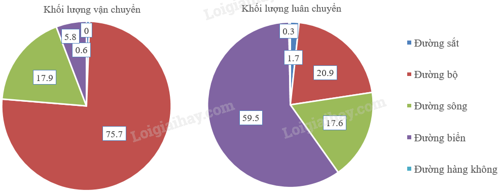 a) Vẽ biểu đồ thể hiện cơ cấu khối lượng vận chuyển và luân chuyển hàng hóa phân theo loại hình vận tải của nước ta năm 2013.