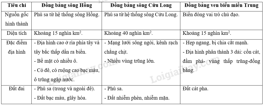 Giải câu 2 trang 14 sách bài tập Địa lí 12, Dựa vào kiến thức đã học, hãy hoàn thành bảng sau: