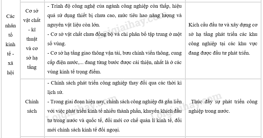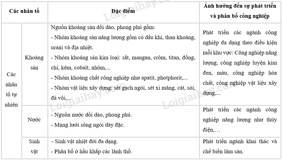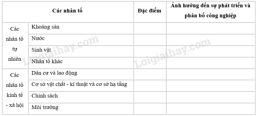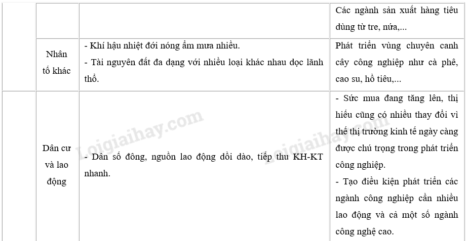 Giải câu 2 trang 30 SBT địa 9, Dựa vào kiến thức đã học, hãy hoàn thành bảng sau:
