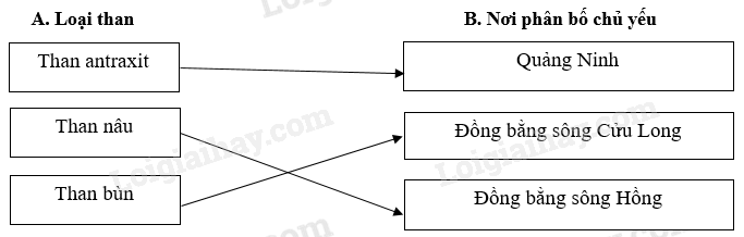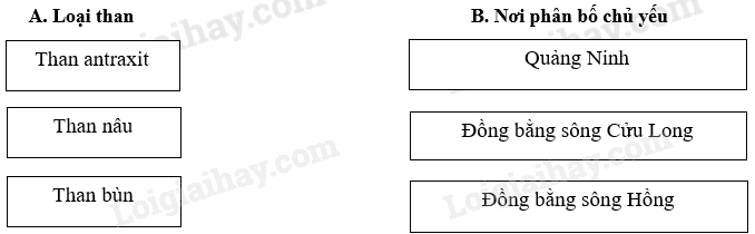 Giải câu 2 trang 83 sách bài tập Địa lí 12, Nối ô ở cột A với ô ở cột B sao cho đúng: