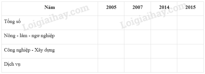 Giải câu 3 trang 102 sách bài tập Địa lí 9, Dựa vào Niên giám thống kê của tỉnh, em hãy hoàn thành bảng cơ cấu GDP của tỉnh.