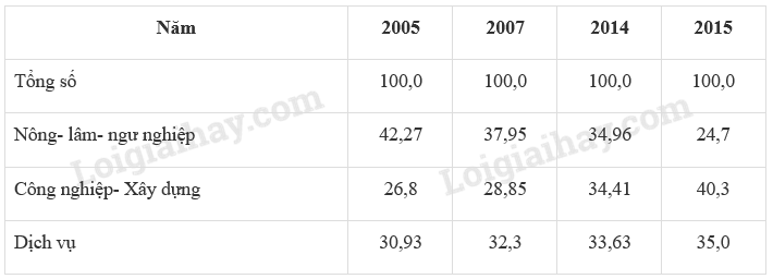 CƠ CẤU GDP CỦA TỈNH, GIAI ĐOẠN 2005-2015 (Đơn vị %)