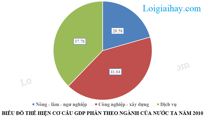 Trong cơ cấu GDP của nước ta năm 2010, nông – lâm – ngư nghiệp chiếm 20,58 %, công nghiệp – xây dựng chiếm 41,64 %, dịch vụ chiếm 37,78 %.