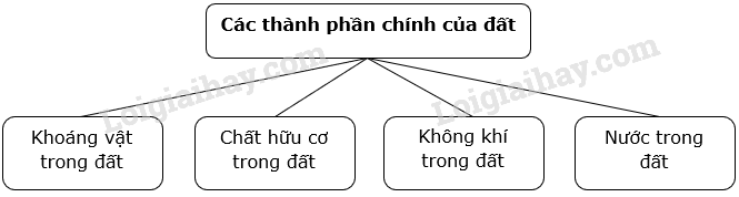 Lựa chọn một số cụm từ sau: lớp vỏ Trái Đất, khoáng vật trong đất, mùn, chất hữu cơ trong đất, nước trong đất, các thành phần chính của đất, đá mẹ, đá gốc, không khí trong đất để tạo sơ đồ thể hiện các thành phần chính của đất.