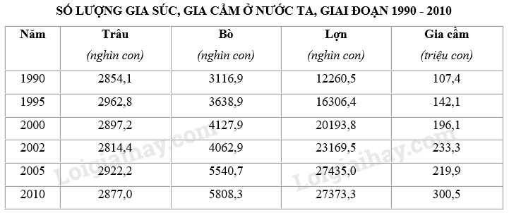 – Số lượng lợn từ 12260,5 nghìn con (năm 1990) lên 27373,3 nghìn con (năm 2010) tăng 15112,8 nghìn con.