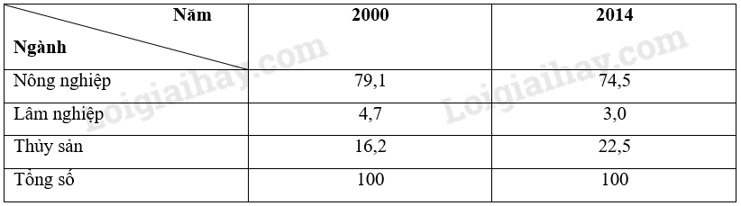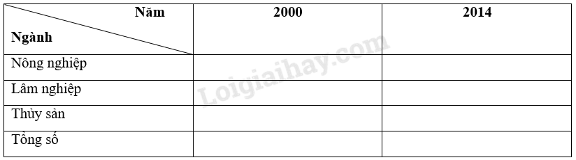 a. Tính tỉ trọng của từng ngành trong tổng giá trị sản xuất nông, lâm nghiệp và thủy sản và điền vào bảng sau: