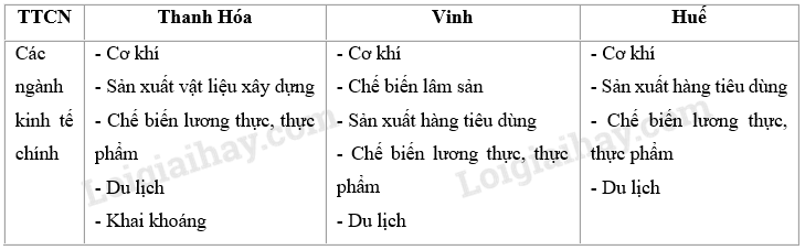 Giải câu 5 trang 60 sách bài tập Địa lí 9, Dựa vào hình 24.3. Lược đồ kinh tế vùng Bắc Trung Bộ, tr. 87 SGK, hoàn thành bảng dưới đây