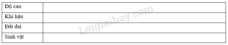 Trình bày đặc điểm tự nhiên của đai cận nhiệt gió mùa trên núi bằng cách hoàn thành bảng dưới đây: