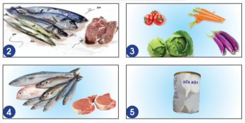 Những hàng hóa không nên chọn là hình 2 và hình 5. Vì những hàng hóa này không còn tươi ngon, có nhiều côn trùng gây bệnh đậu vào và đã quá hạn sử dụng. Nếu chúng ta vẫn sử dụng thì sẽ bị ngộ độc.