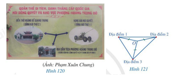 Làm thế nào để xác định được vị trí cách đều ba địa điểm được minh họa trong Hình 121?