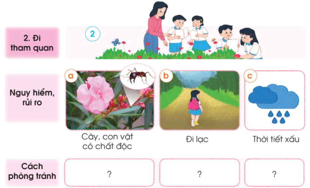 – Khi đi tham quan, em có thể gặp phải những nguy hiểm, rủi ro như: