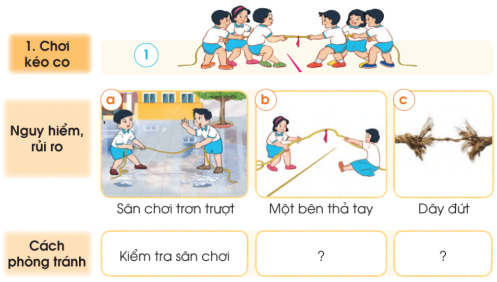– Khi chơi kéo co, em có thể gặp phải những nguy hiểm, rủi ro như: