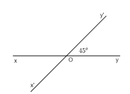 \(\widehat {xOx’} = \widehat {yOy’} = {45^o}\) (hai góc đối đỉnh bằng nhau)