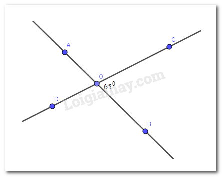 Giả sử hai đường thẳng AB và CD cắt nhau tại O, tạo ra góc BOC có số đo \(65^0\)