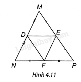 Ta có D là trung điểm MN, E là trung điểm MP, F là trung điểm NP nên DE, EF, DF đều là đường trung bình của tam giác MNP.