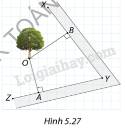 Trong Hình 5.27, mỗi ô vuông tương ứng với độ dài 1m. Có thể quây một hàng rào tròn bán kính 5m với tâm tại vị trí cây xanh O mà không cắt vào đường bao XY và YZ không?