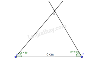 Vẽ tam giác ABC có AB = 6 cm, \(\widehat {BAC} = 50^\circ ;\widehat {ABC} = 60^\circ \)