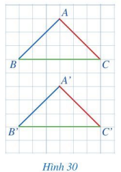 Quan sát hai tam giác ABC và A’B’C’ trên một tờ giấy kẻ ô vuông (Hình 30).