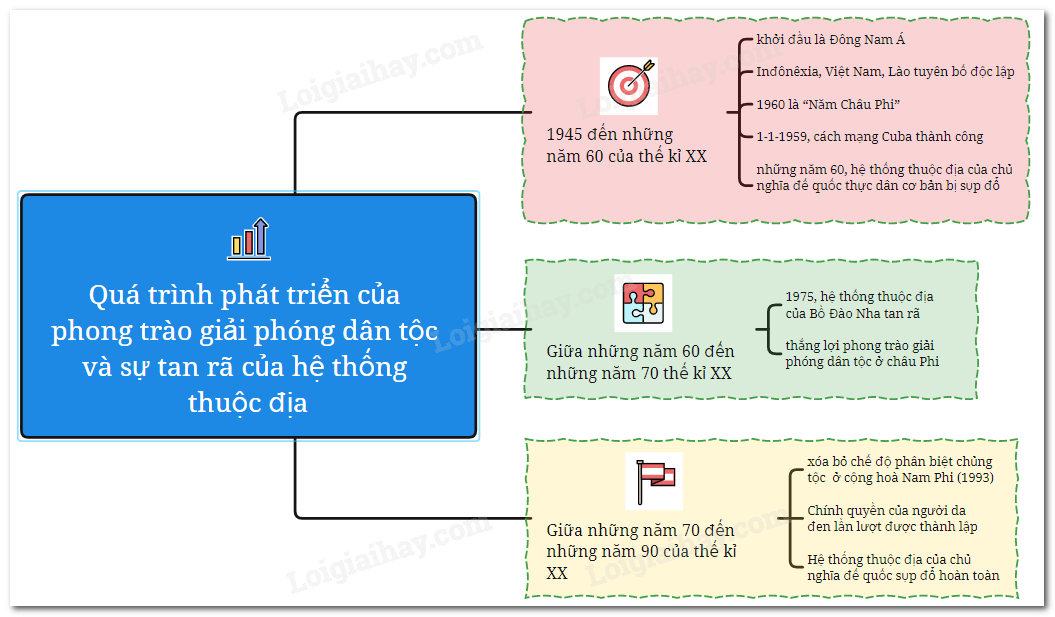 Sơ đồ tư duy Quá trình phát triển của phong trào giải phóng dân tộc và sự tan rã của hệ thống thuộc địa
