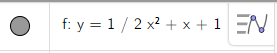 2. Nhập phương trình bậc hai theo cú pháp y=1/2x^2+x+1 vào vùng nhập lệnh như hình bên