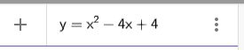 2. Nhập phương trình bậc hai theo cú pháp y=x^2-4x+4 vào vùng nhập lệnh như hình bên
