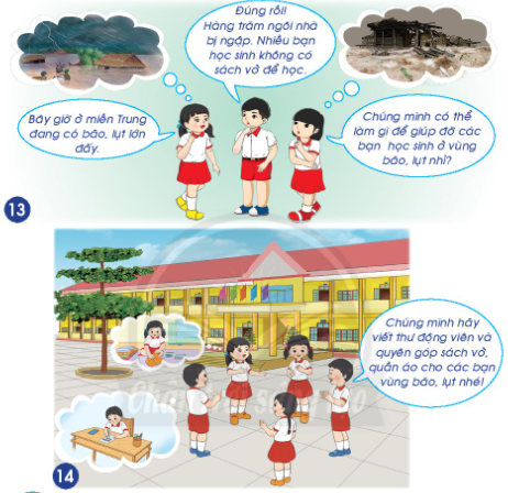 An và các bạn đang nói về thiên tai xảy ra ở đâu Thiên tai đó gây ra những thiệt hại gì Các bạn dự định sẽ làm gì để giúp đỡ những học sinh ở khu vực đó?