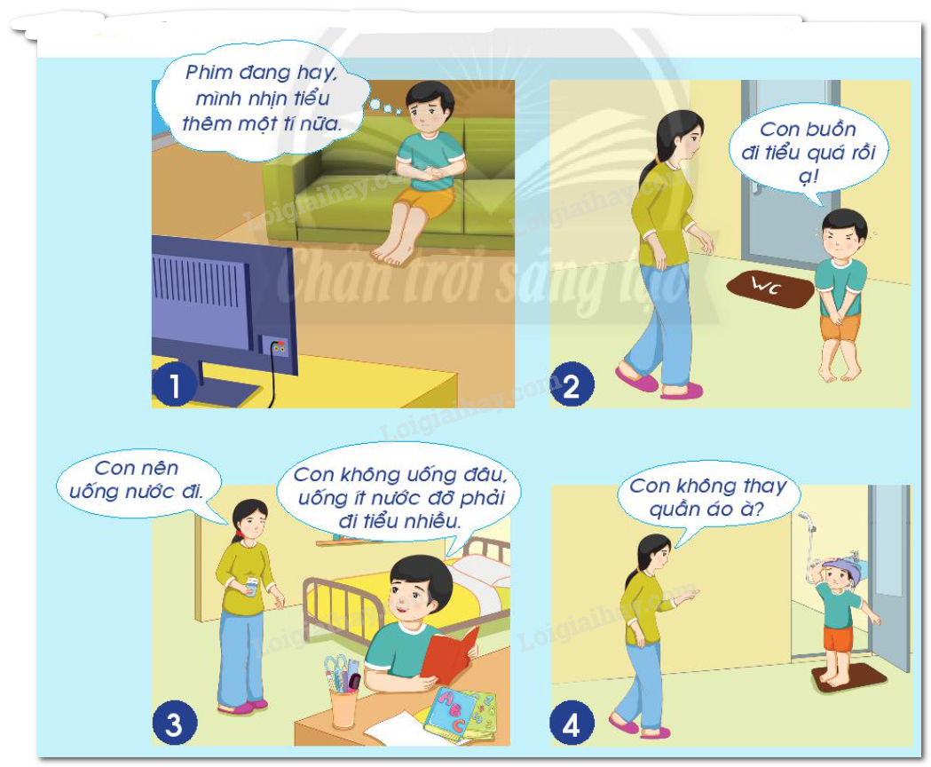 – Hình 1: Mải mê xem phim nên Nam cố nhịn không đi tiểu.