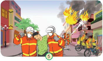 Em quan sát hình vẽ, nêu nhận xét về cách ứng xử trong mỗi hình khi xảy ra hỏa hoạn.