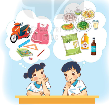 – Đồ dùng: quần áo, ti vi, tủ lạnh, xe máy, sách vở, bút, thước kẻ, bát đũa, đĩa, thìa,…